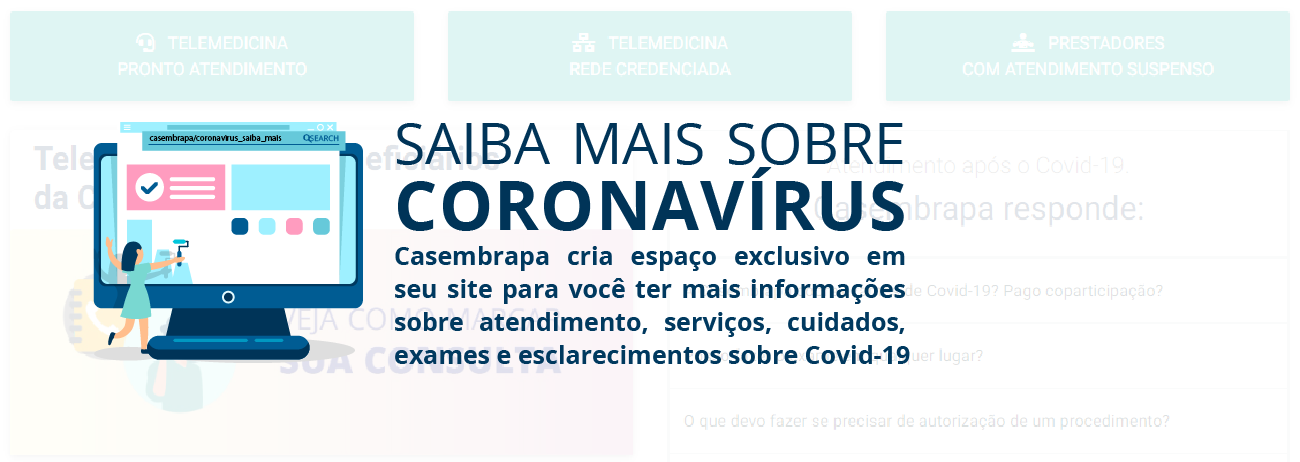 Outro destaque do site é o espaço “Casembrapa Responde”, com perguntas e respostas sobre como está o atendimento ao beneficiário durante o período de combate à Covid-19. Também é possível se informar sobre os canais de atendimento eletrônico da operadora, saber quais prestadores oferecem o exame para diagnóstico da doença aos nossos associados e tirar dúvidas sobre o coronavírus, sua prevenção e os cuidados.
